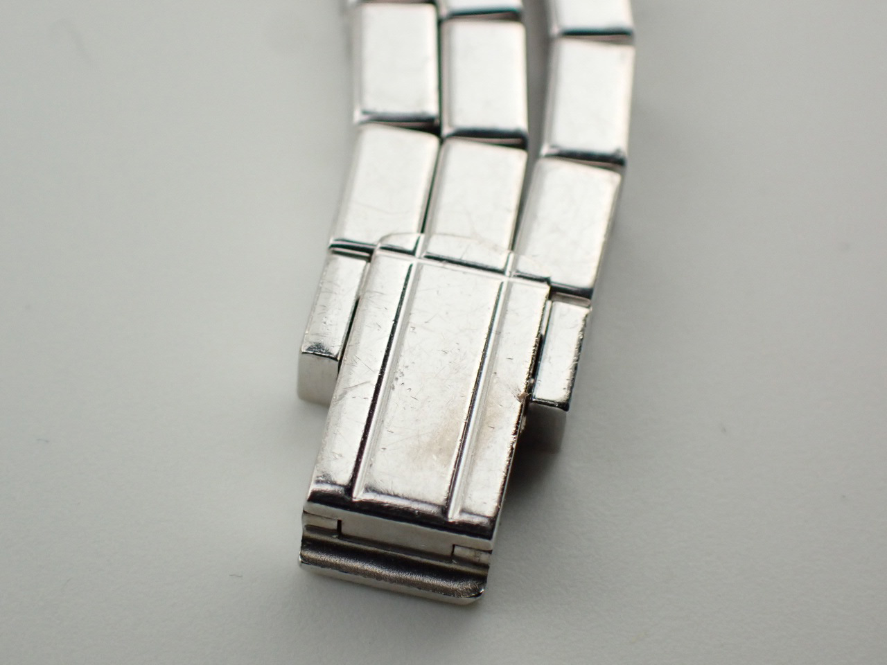 | B | わりと綺麗な中古。大きな傷や打刻はなく、日常使用のカスリきずは光の反射により確認とれる程度で時計を目視する距離感からならキズ等はあまり目立たない中古品。週一回着用で1年以上使用・保管していたような使用感です。 |