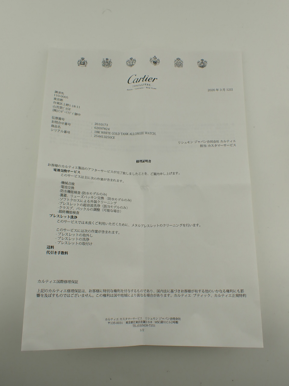 | 付属品 | 純正ボックス/メーカー修理明細票(2026年3月付) |