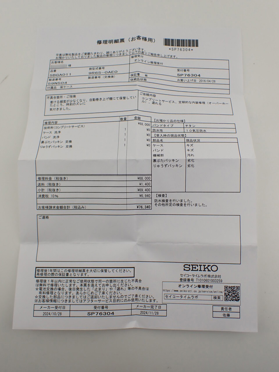 | 付属品 | 純正ボックス/メーカー修理明細票(2024年11月付) |