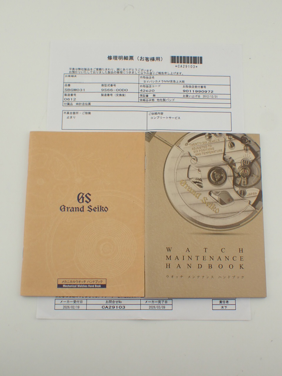 | 付属品 | 純正ボックス/GS規格検定合格証明書、メーカー修理明細票(2026年3月付) |