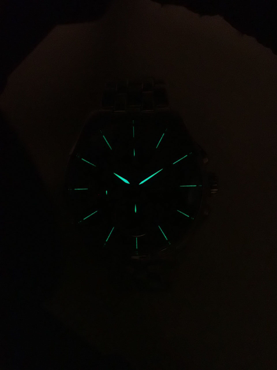 A | すごく綺麗な中古。大きな傷や打刻はなく、日常使用のカスリきずは光の反射により確認がとれる程度で時計の外観からはキズ等は全く目立たない極綺麗な中古品。週一回着用で3か月〜半年位大切に使用・保管していたような使用感です。 |